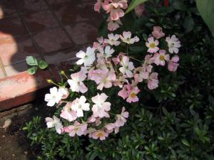 BALLERINA・バレリーナ ぱっと見、上のビンゴ メイディランドと似ているけれど、葉の形は細長く独特です。 淡いピンクのぼかしの入った小さな桜のような花が束になって本当にきれいです。 |